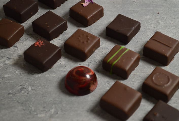 最高級ベルギーチョコレート、ピュラトス社のチョコレートを使用。豊かな香りと滑らかな口溶けが特徴の「レーヴルショコラ」は、一度食べたら忘れられない味わいです。