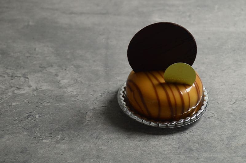 鳴門のうず潮を使用したキャラメルグラサージュにキャラメルショコラムースバニラのブリュレを合 わせました
